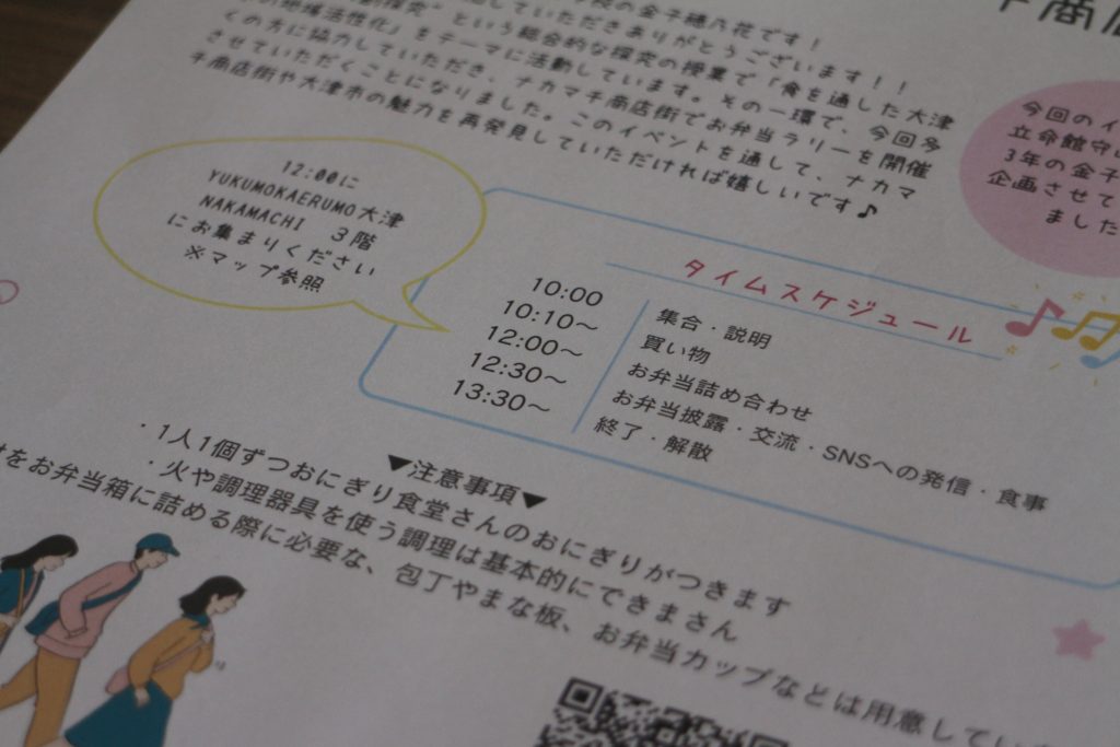 ナカマチ商店街で、「お弁当ラリー in ナカマチ商店街」が開催されました。今回のイベントは、総合的探求として「食を通した大津市の地域活性化」をテーマに活動する立命館守山高校の3年生が企画したものです。